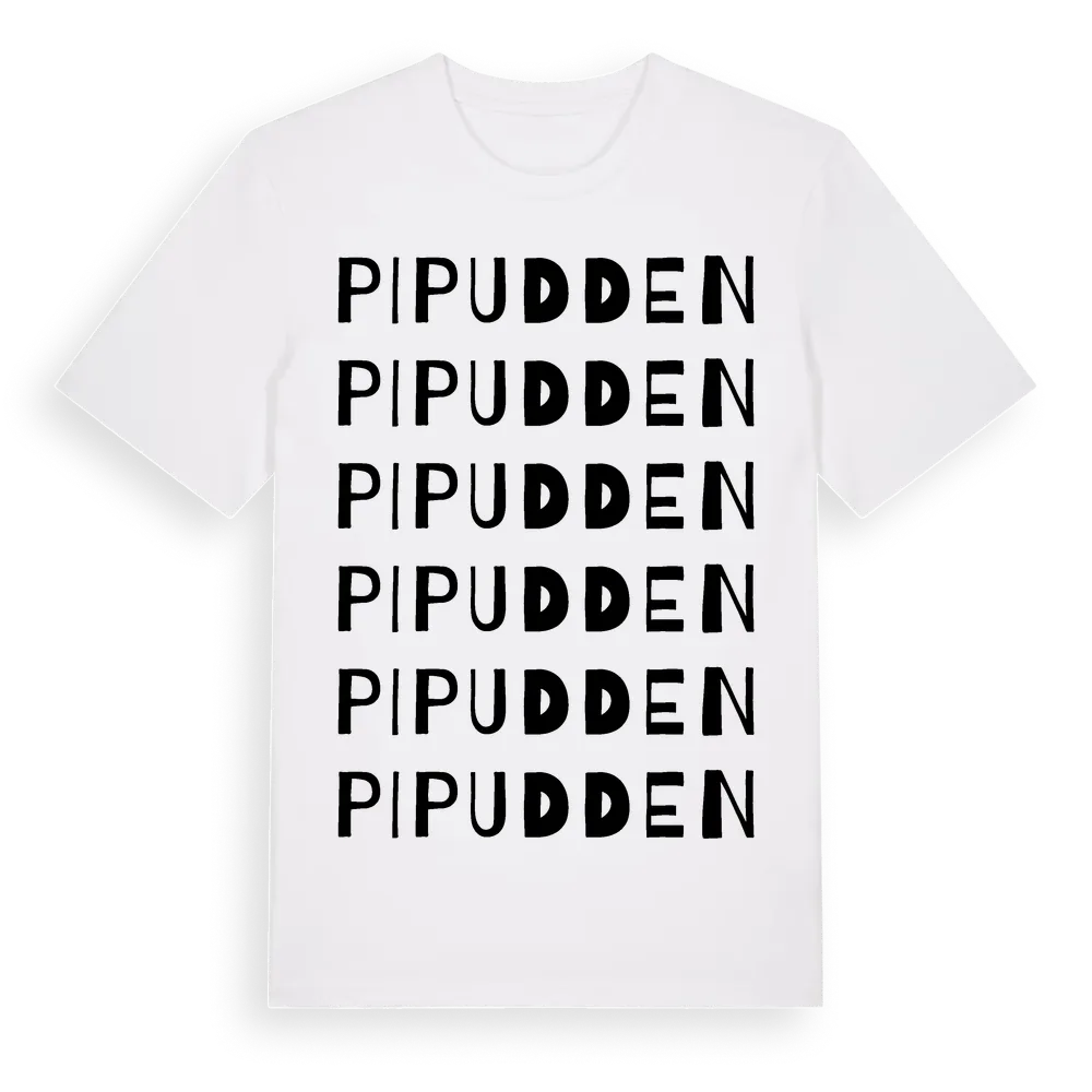 En ordlek byggd på Pipuddens namn. Subtilt och klurig – ett motiv som bara de som verkligen känner platsen fullt ut förstår. Premium bomull, unisex – från Pipudden i Norrbottens län.