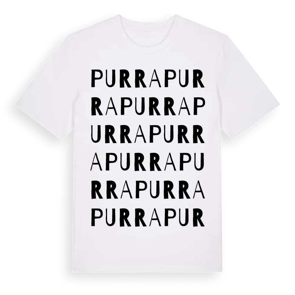 Purra ordlek t-shirt är inspirerad av byn Purra i Norrbottens län, Sverige. Tröjan är designad för dig som har en speciell koppling till platsen – oavsett om du bor här, har rötterna här eller bara älskar Purra.