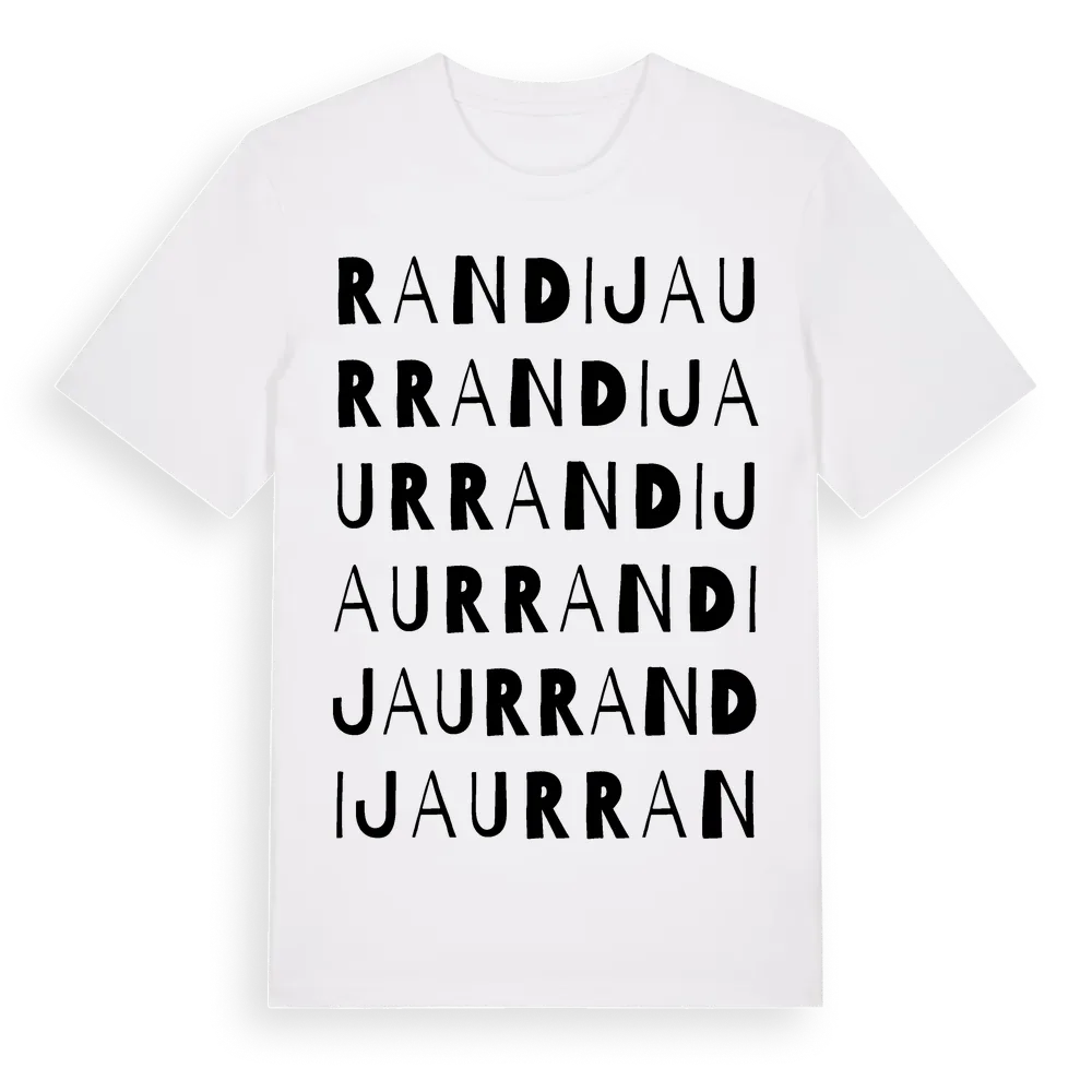 Randijaur ordlek t-shirt är inspirerad av byn Randijaur i Norrbottens län, Sverige. Tröjan är designad för dig som har en speciell koppling till platsen – oavsett om du bor här, har rötterna här eller bara älskar Randijaur.