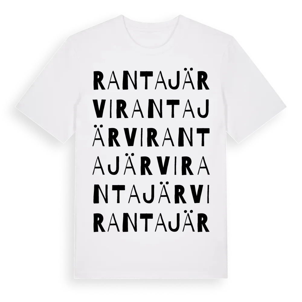 Rantajärvi ordlek t-shirt är inspirerad av byn Rantajärvi i Norrbottens län, Sverige. Tröjan är designad för dig som har en speciell koppling till platsen – oavsett om du bor här, har rötterna här eller bara älskar Rantajärvi.