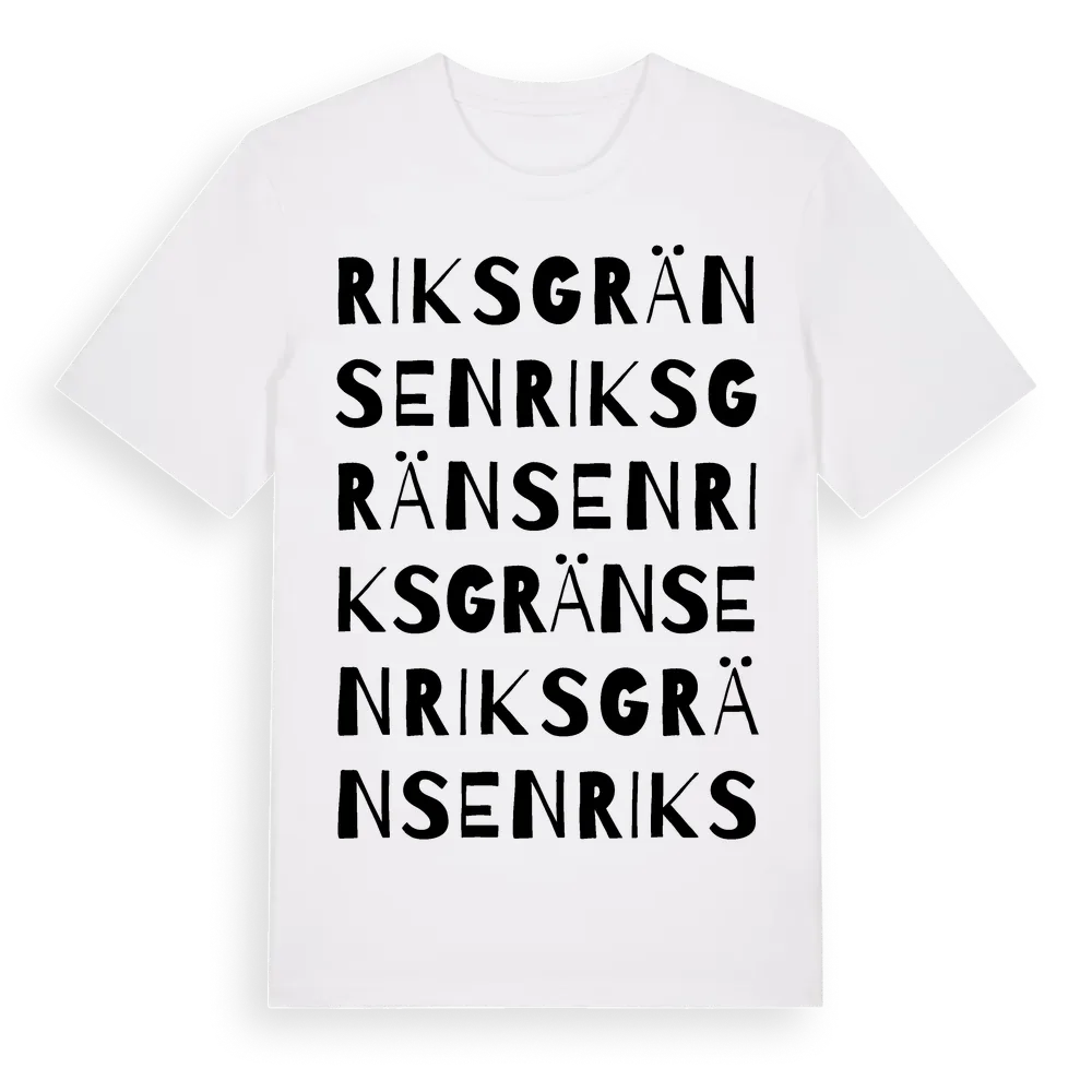 En ordlek byggd på Riksgränsens namn. Subtilt och klurig – ett motiv som bara de som verkligen känner platsen fullt ut förstår. Premium bomull, unisex – från byn Riksgränsen i Norrbottens län.