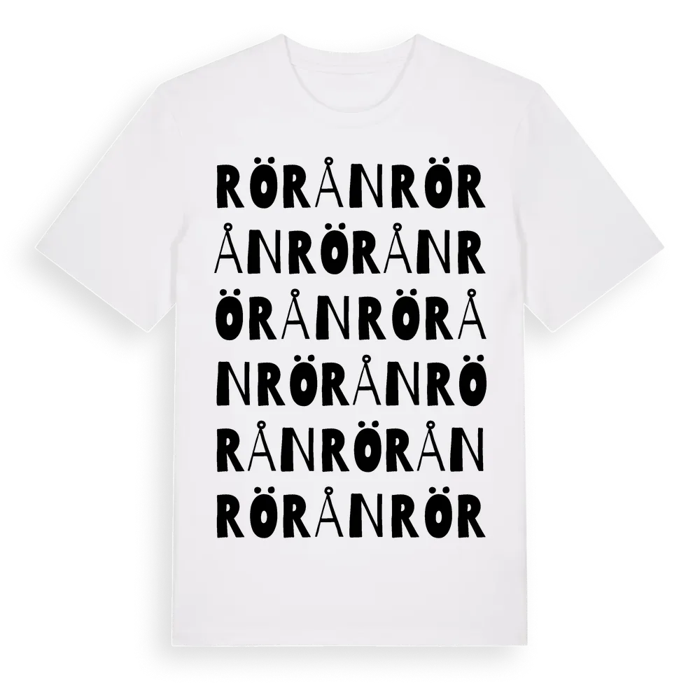 Rörån ordlek t-shirt är inspirerad av byn Rörån i Norrbottens län, Sverige. Tröjan är designad för dig som har en speciell koppling till platsen – oavsett om du bor här, har rötterna här eller bara älskar Rörån.