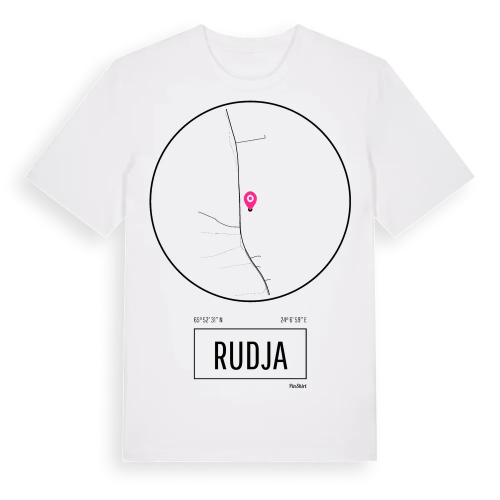 Ett rent, runt tryck med Rudjas namn. Minimalistiskt och stilrent – perfekt för den som känner platsen utan att skrika det. Premium bomull, unisex – från stadsdelen Rudja i Norrbottens län.