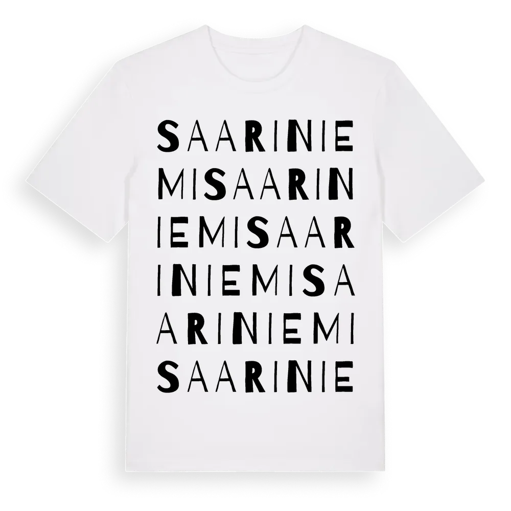 Saariniemi ordlek t-shirt är inspirerad av Saariniemi i Norrbottens län, Sverige. Tröjan är designad för dig som har en speciell koppling till platsen – oavsett om du bor här, har rötterna här eller bara älskar Saariniemi.