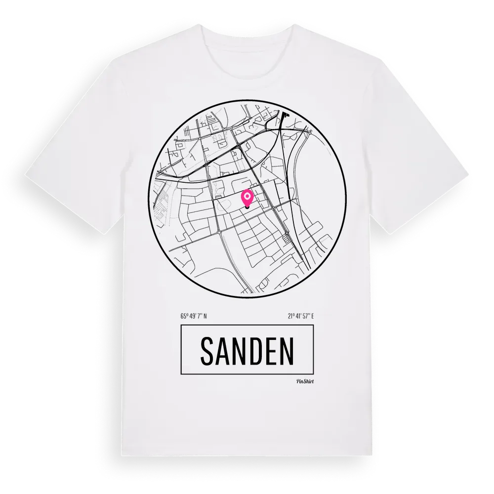 Sanden t-shirt är inspirerad av stadsdelen Sanden i Norrbottens län, Sverige. Tröjan är designad för dig som har en speciell koppling till platsen – oavsett om du bor här, har rötterna här eller bara älskar Sanden.
