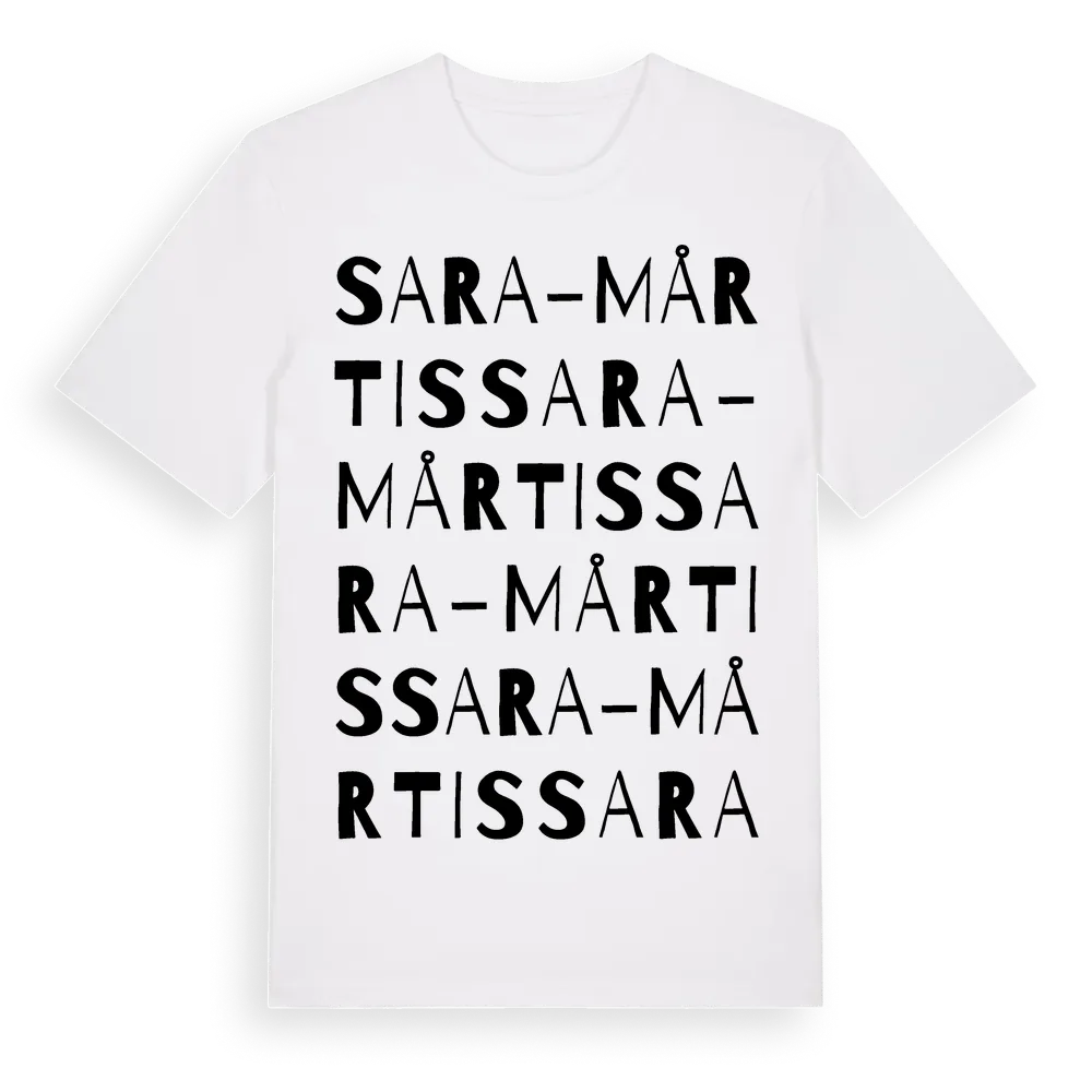 Sara-Mårtis ordlek t-shirt är inspirerad av Sara-Mårtis i Norrbottens län, Sverige. Tröjan är designad för dig som har en speciell koppling till platsen – oavsett om du bor här, har rötterna här eller bara älskar Sara-Mårtis.