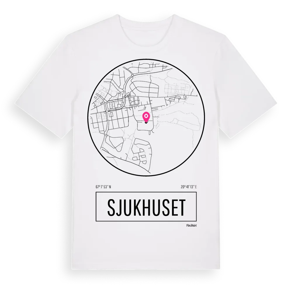 Sjukhuset t-shirt är inspirerad av stadsdelen Sjukhuset i Norrbottens län, Sverige. Tröjan är designad för dig som har en speciell koppling till platsen – oavsett om du bor här, har rötterna här eller bara älskar Sjukhuset.