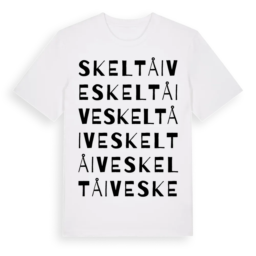 Skeltåive ordlek t-shirt är inspirerad av Skeltåive i Norrbottens län, Sverige. Tröjan är designad för dig som har en speciell koppling till platsen – oavsett om du bor här, har rötterna här eller bara älskar Skeltåive.