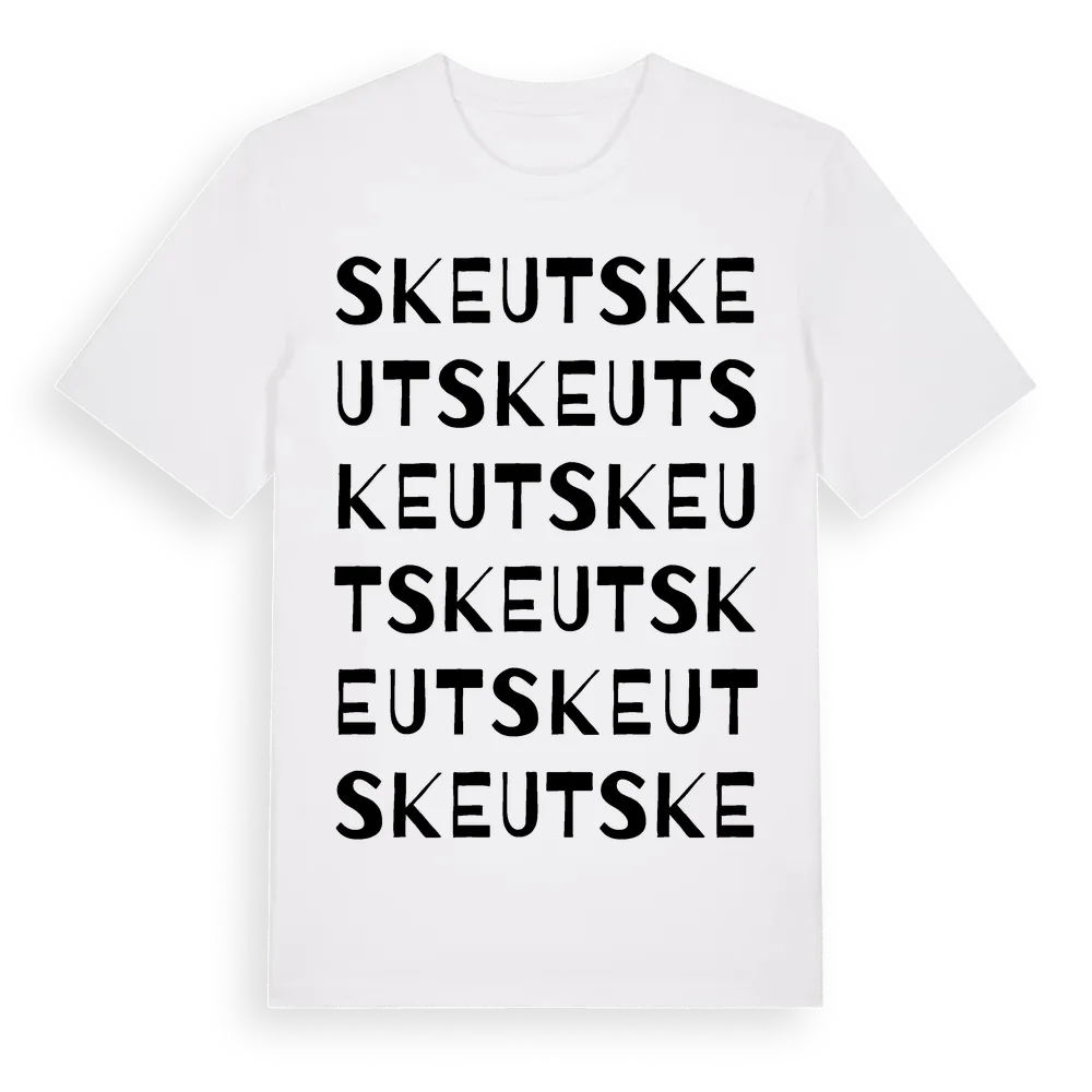Skeut ordlek t-shirt är inspirerad av Skeut i Norrbottens län, Sverige. Tröjan är designad för dig som har en speciell koppling till platsen – oavsett om du bor här, har rötterna här eller bara älskar Skeut.