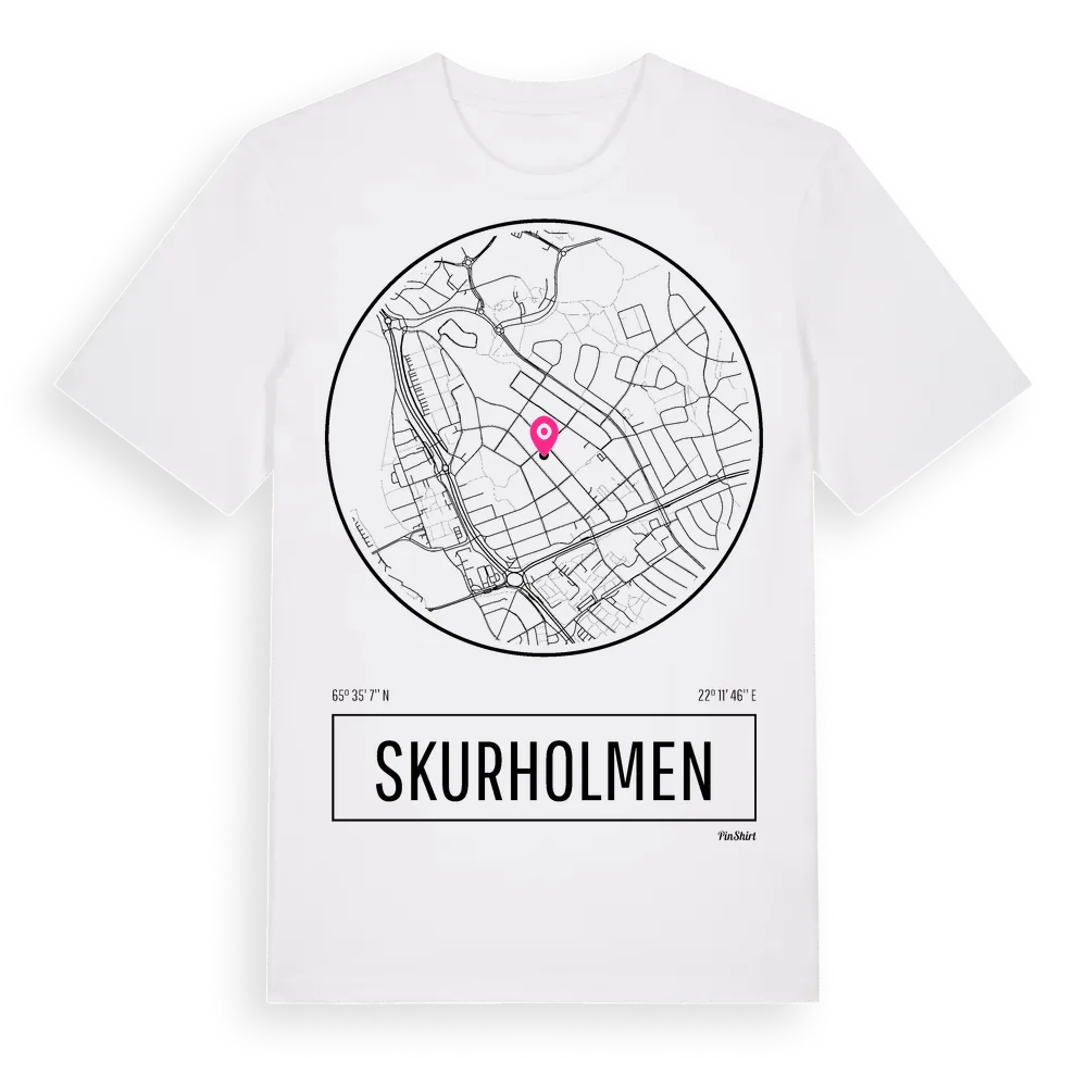 Skurholmen t-shirt är inspirerad av stadsdelen Skurholmen i Norrbottens län, Sverige. Tröjan är designad för dig som har en speciell koppling till platsen – oavsett om du bor här, har rötterna här eller bara älskar Skurholmen.