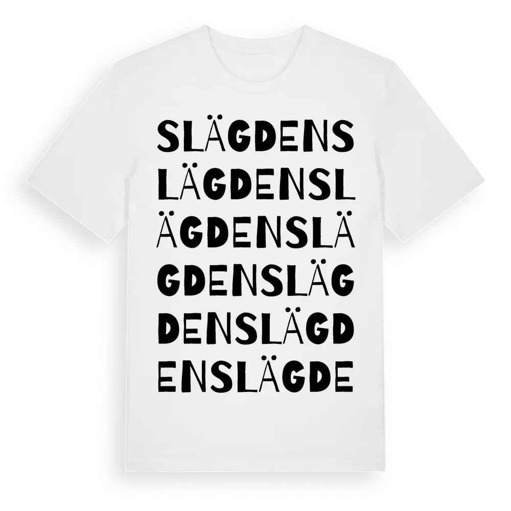 Slägden ordlek t-shirt är inspirerad av Slägden i Norrbottens län, Sverige. Tröjan är designad för dig som har en speciell koppling till platsen – oavsett om du bor här, har rötterna här eller bara älskar Slägden.