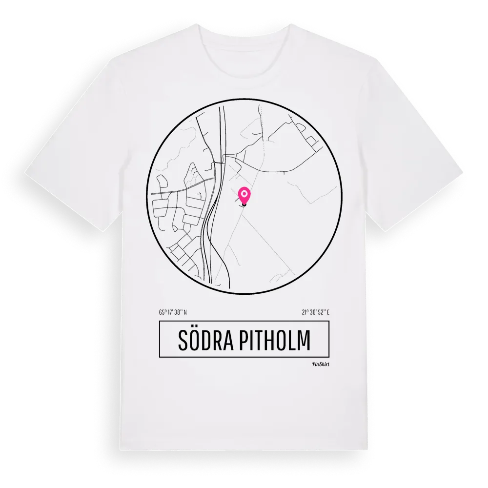 Södra Pitholm t-shirt är inspirerad av stadsdelen Södra Pitholm i Norrbottens län, Sverige. Tröjan är designad för dig som har en speciell koppling till platsen – oavsett om du bor här, har rötterna här eller bara älskar Södra Pitholm.