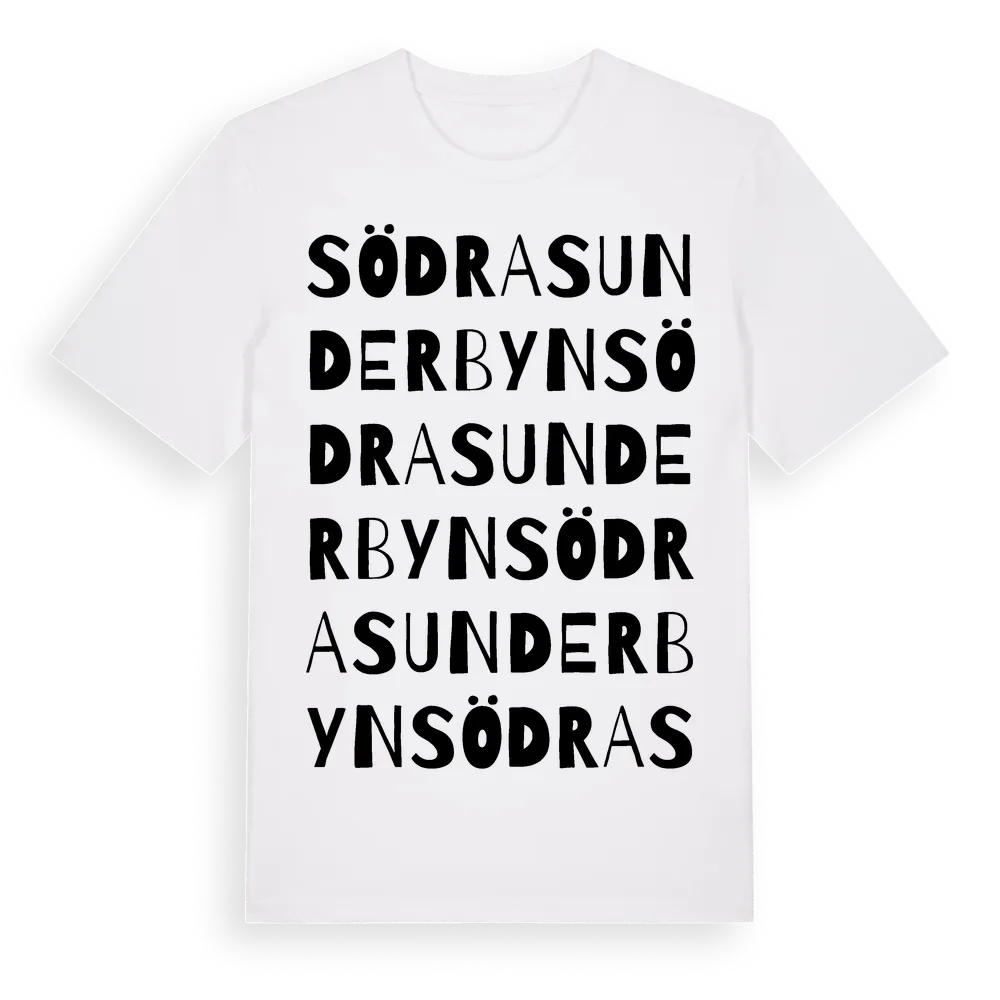 Södra Sunderbyn ordlek t-shirt är inspirerad av byn Södra Sunderbyn i Norrbottens län, Sverige. Tröjan är designad för dig som har en speciell koppling till platsen – oavsett om du bor här, har rötterna här eller bara älskar Södra Sunderbyn.