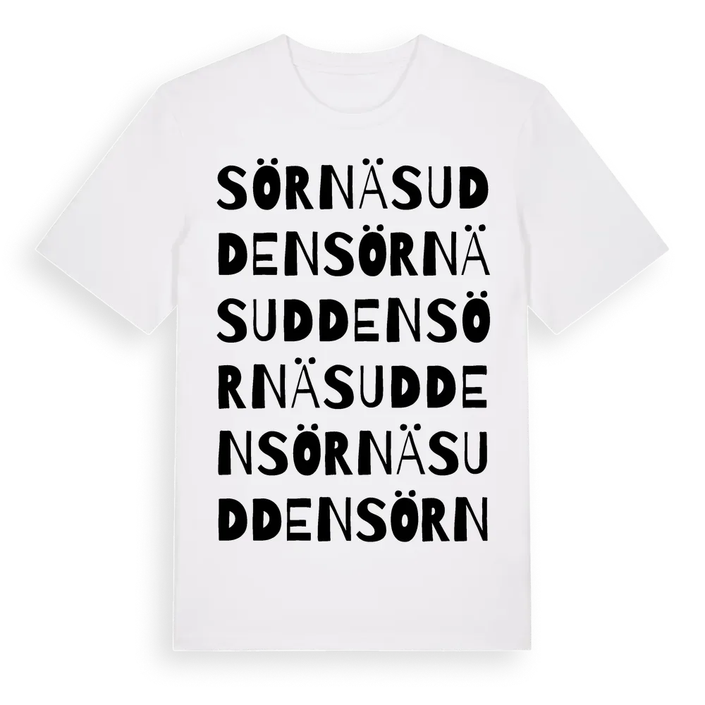En ordlek byggd på Sörnäsuddens namn. Subtilt och klurig – ett motiv som bara de som verkligen känner platsen fullt ut förstår. Premium bomull, unisex – från byn Sörnäsudden i Norrbottens län.