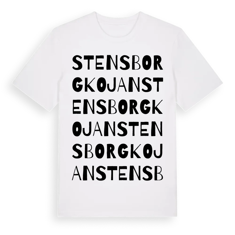 Stensborgkojan ordlek t-shirt är inspirerad av Stensborgkojan i Norrbottens län, Sverige. Tröjan är designad för dig som har en speciell koppling till platsen – oavsett om du bor här, har rötterna här eller bara älskar Stensborgkojan.