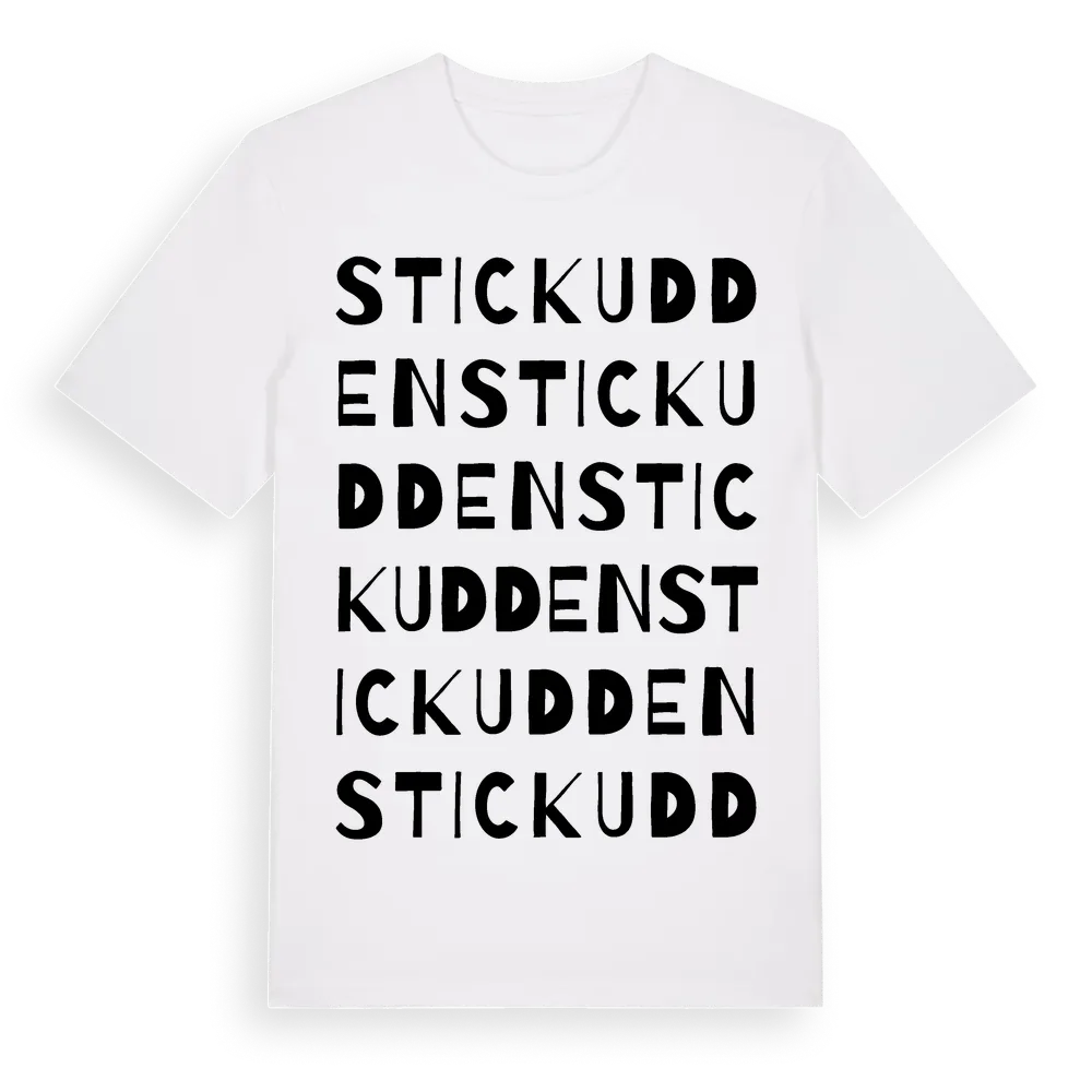 En ordlek byggd på Stickuddens namn. Subtilt och klurig – ett motiv som bara de som verkligen känner platsen fullt ut förstår. Premium bomull, unisex – från Stickudden i Norrbottens län.