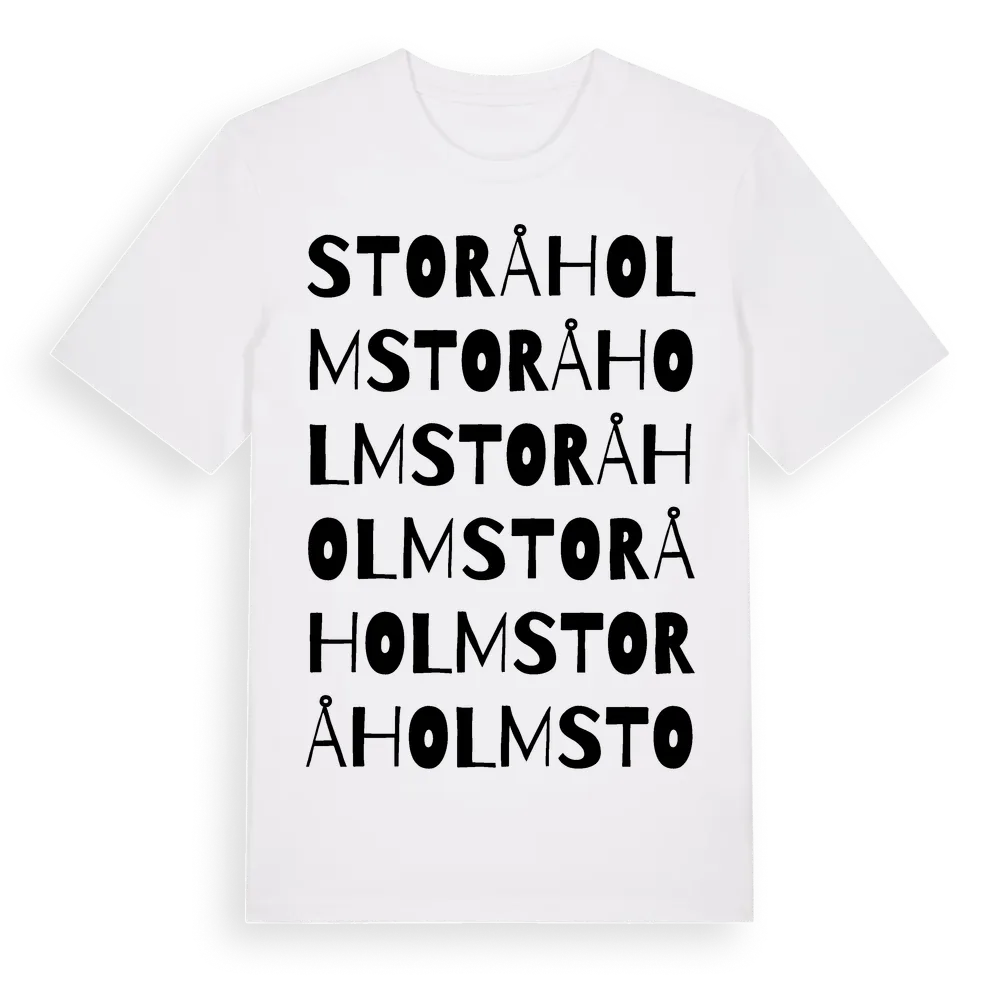 Storåholm ordlek t-shirt är inspirerad av Storåholm i Norrbottens län, Sverige. Tröjan är designad för dig som har en speciell koppling till platsen – oavsett om du bor här, har rötterna här eller bara älskar Storåholm.