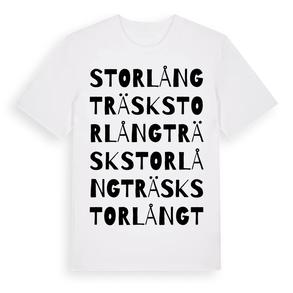 Storlångträsk ordlek t-shirt är inspirerad av Storlångträsk i Norrbottens län, Sverige. Tröjan är designad för dig som har en speciell koppling till platsen – oavsett om du bor här, har rötterna här eller bara älskar Storlångträsk.