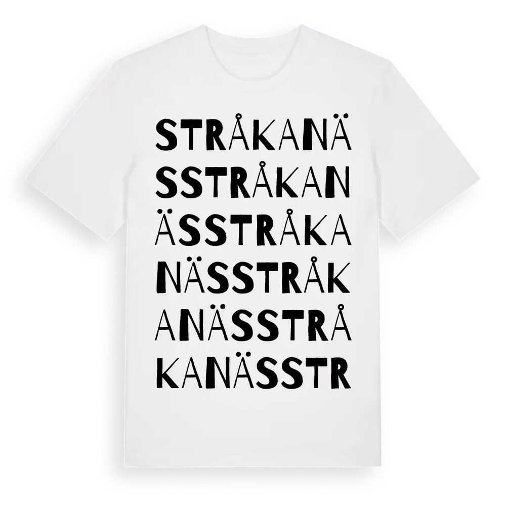Stråkanäs ordlek t-shirt är inspirerad av byn Stråkanäs i Norrbottens län, Sverige. Tröjan är designad för dig som har en speciell koppling till platsen – oavsett om du bor här, har rötterna här eller bara älskar Stråkanäs.