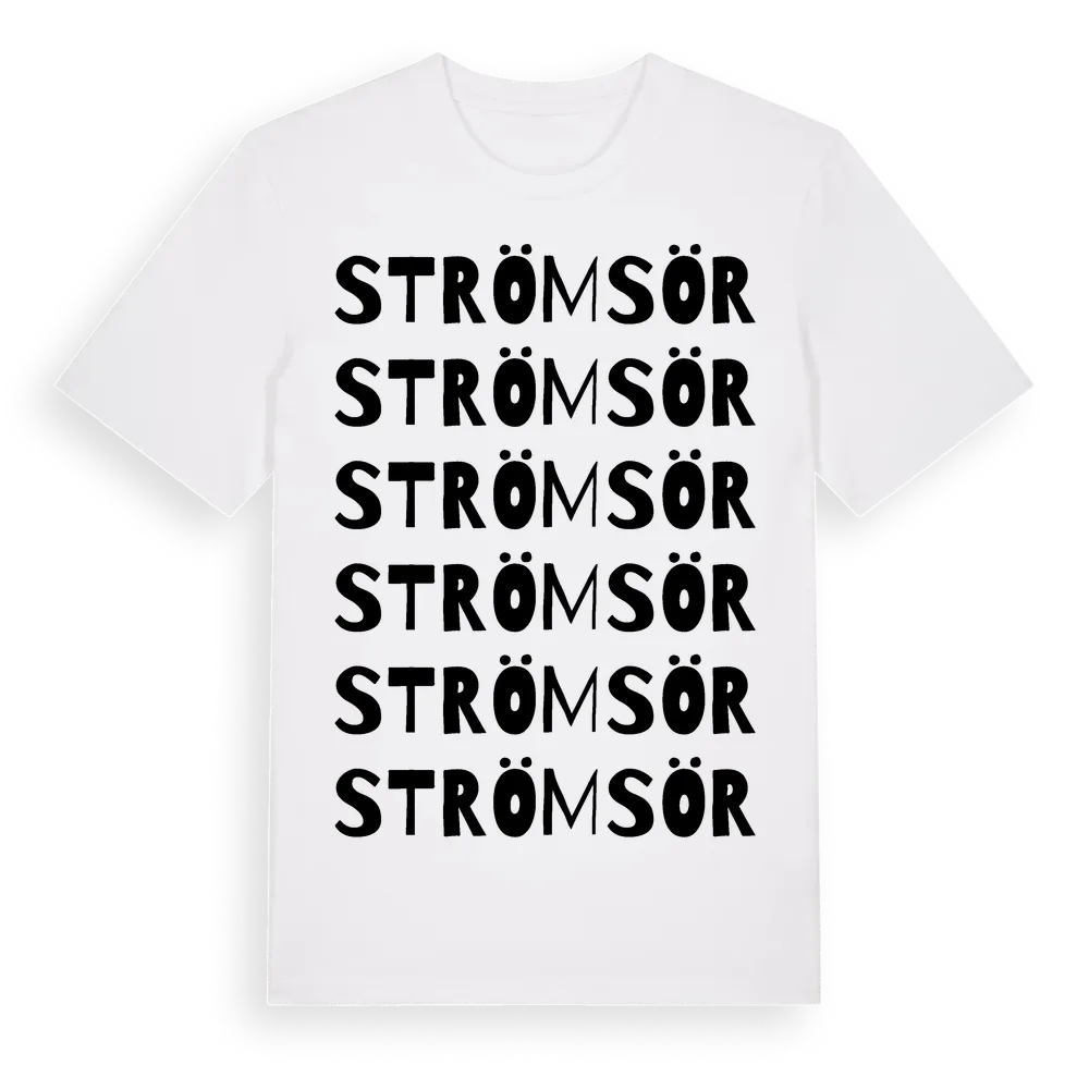 Strömsör ordlek t-shirt är inspirerad av byn Strömsör i Norrbottens län, Sverige. Tröjan är designad för dig som har en speciell koppling till platsen – oavsett om du bor här, har rötterna här eller bara älskar Strömsör.