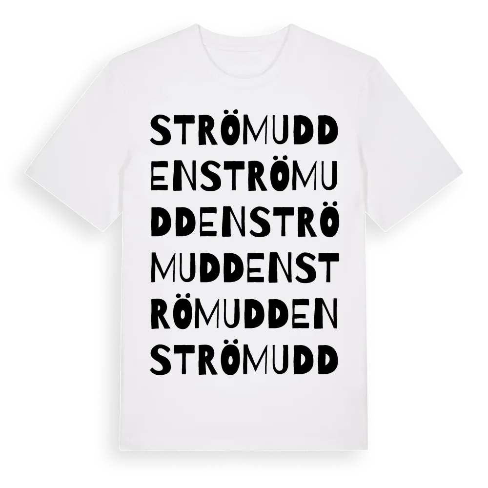 Strömudden ordlek t-shirt är inspirerad av Strömudden i Norrbottens län, Sverige. Tröjan är designad för dig som har en speciell koppling till platsen – oavsett om du bor här, har rötterna här eller bara älskar Strömudden.