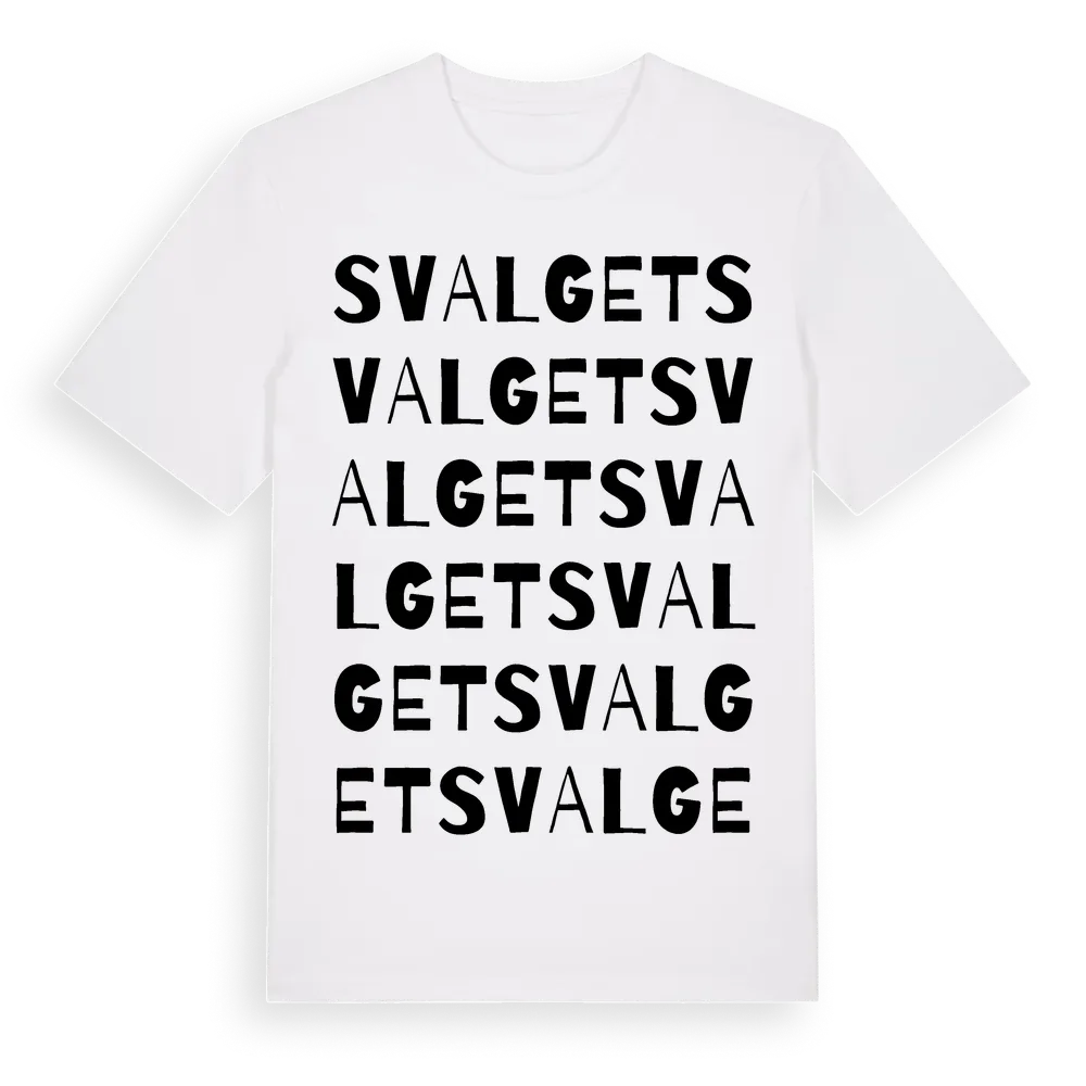 Svalget ordlek t-shirt är inspirerad av Svalget i Norrbottens län, Sverige. Tröjan är designad för dig som har en speciell koppling till platsen – oavsett om du bor här, har rötterna här eller bara älskar Svalget.