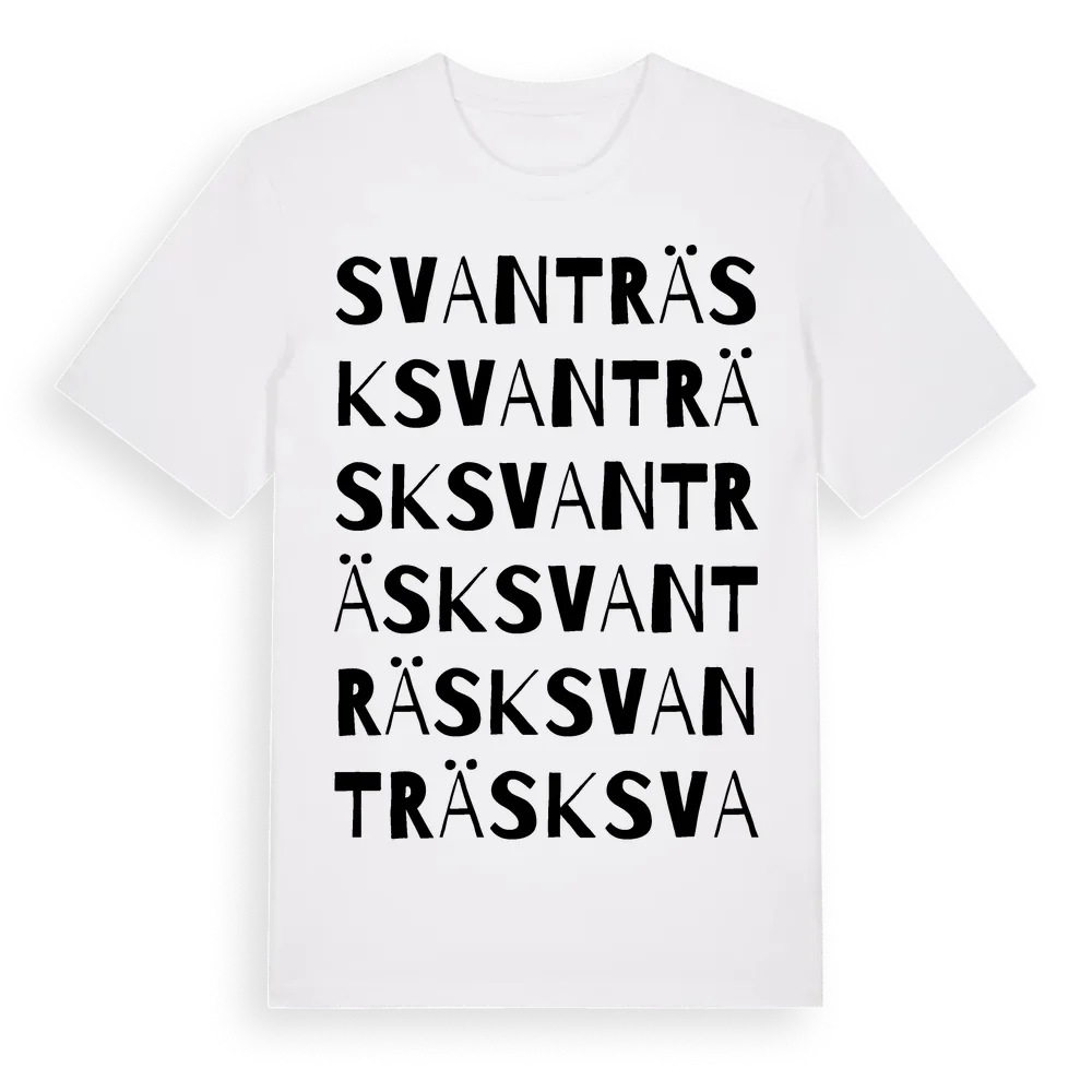 Svanträsk ordlek t-shirt är inspirerad av Svanträsk i Norrbottens län, Sverige. Tröjan är designad för dig som har en speciell koppling till platsen – oavsett om du bor här, har rötterna här eller bara älskar Svanträsk.