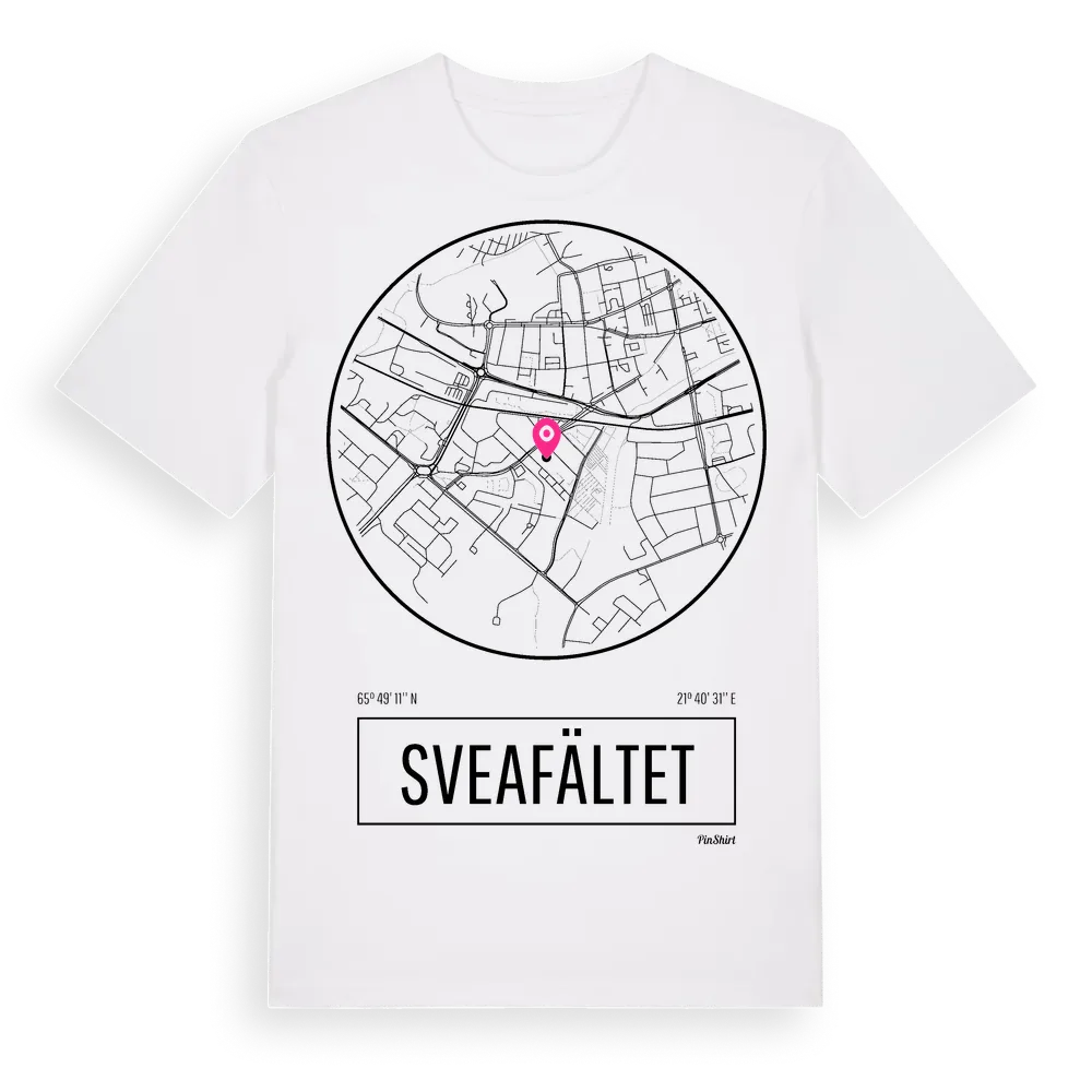 Sveafältet t-shirt är inspirerad av stadsdelen Sveafältet i Norrbottens län, Sverige. Tröjan är designad för dig som har en speciell koppling till platsen – oavsett om du bor här, har rötterna här eller bara älskar Sveafältet.