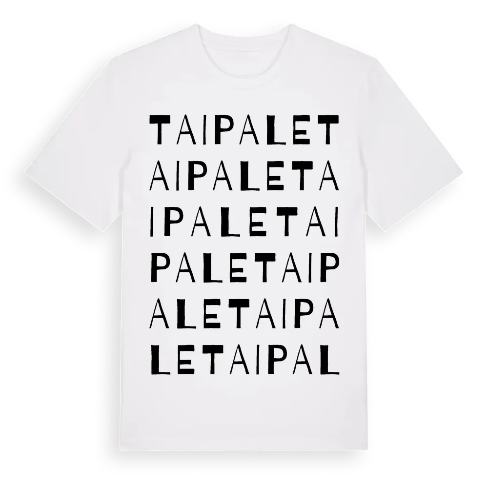 En ordlek byggd på Taipales namn. Subtilt och klurig – ett motiv som bara de som verkligen känner platsen fullt ut förstår. Premium bomull, unisex – från byn Taipale i Norrbottens län.