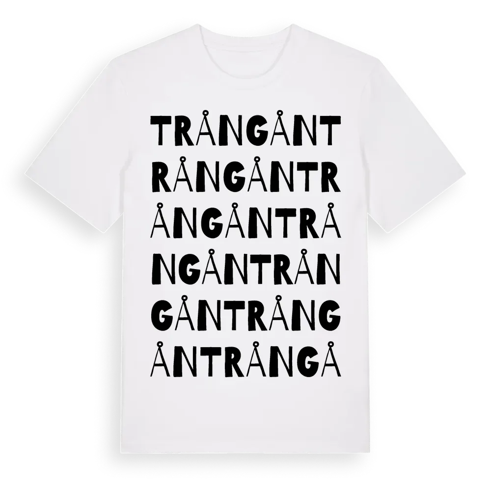 Trångån ordlek t-shirt är inspirerad av byn Trångån i Norrbottens län, Sverige. Tröjan är designad för dig som har en speciell koppling till platsen – oavsett om du bor här, har rötterna här eller bara älskar Trångån.