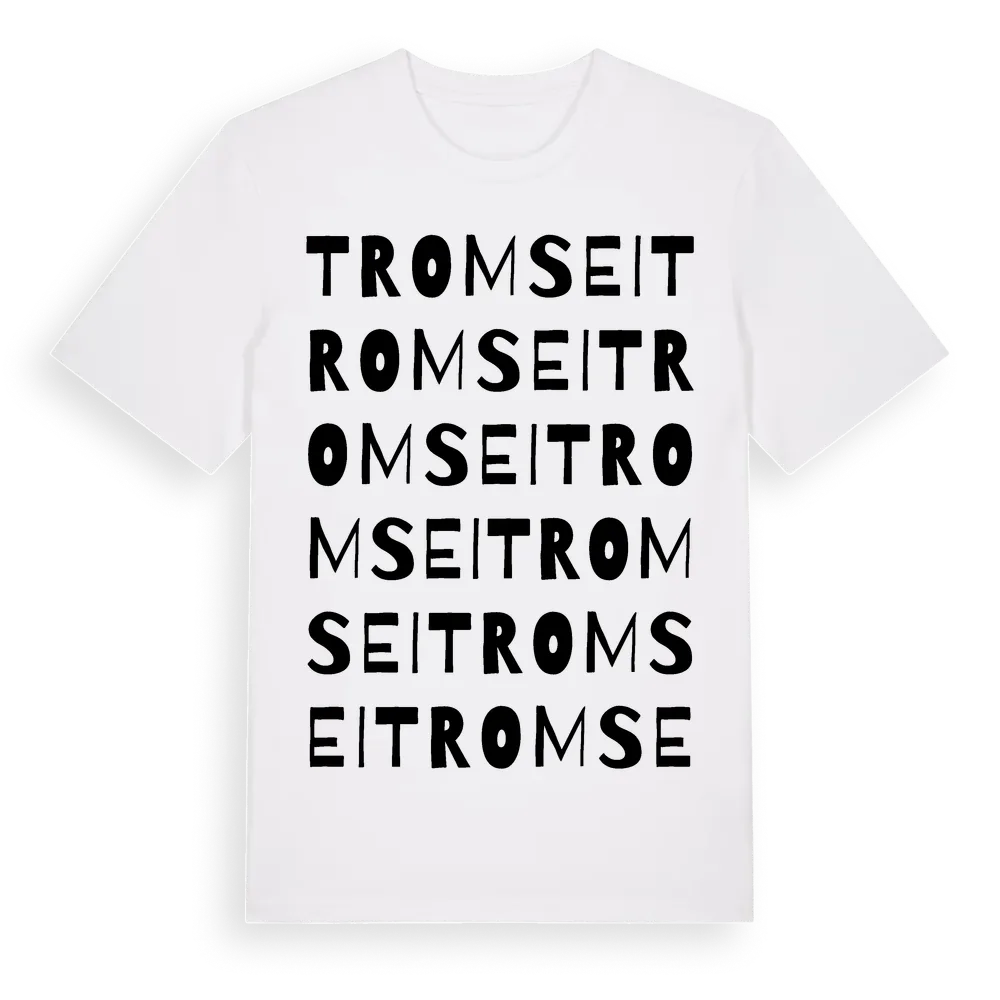 Tromsei ordlek t-shirt är inspirerad av byn Tromsei i Norrbottens län, Sverige. Tröjan är designad för dig som har en speciell koppling till platsen – oavsett om du bor här, har rötterna här eller bara älskar Tromsei.
