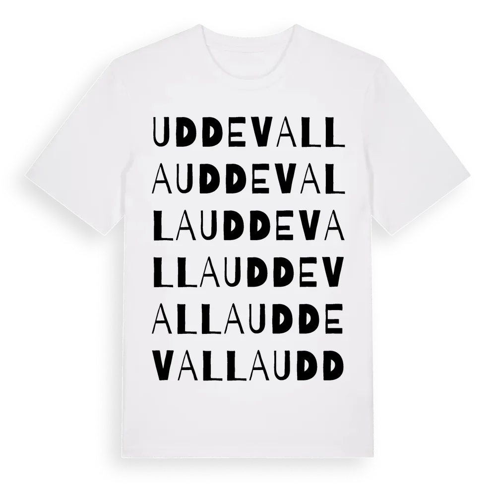 Uddevalla ordlek t-shirt är inspirerad av Uddevalla i Norrbottens län, Sverige. Tröjan är designad för dig som har en speciell koppling till platsen – oavsett om du bor här, har rötterna här eller bara älskar Uddevalla.