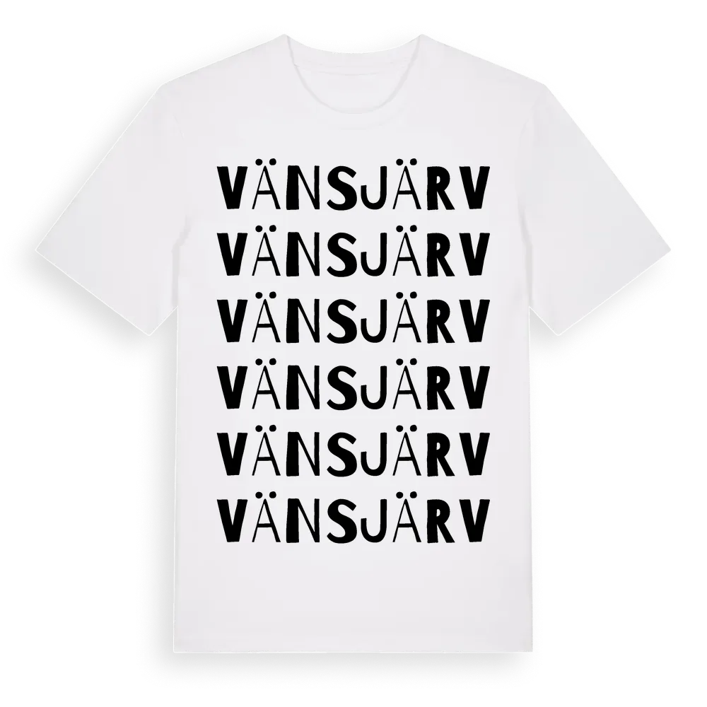 Vänsjärv ordlek t-shirt är inspirerad av stadsdelen Vänsjärv i Norrbottens län, Sverige. Tröjan är designad för dig som har en speciell koppling till platsen – oavsett om du bor här, har rötterna här eller bara älskar Vänsjärv.