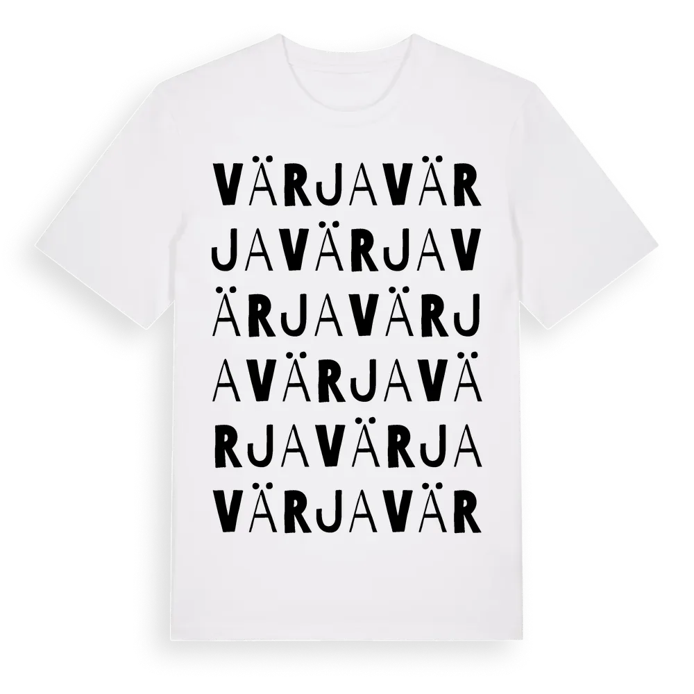Värja ordlek t-shirt är inspirerad av Värja i Norrbottens län, Sverige. Tröjan är designad för dig som har en speciell koppling till platsen – oavsett om du bor här, har rötterna här eller bara älskar Värja.
