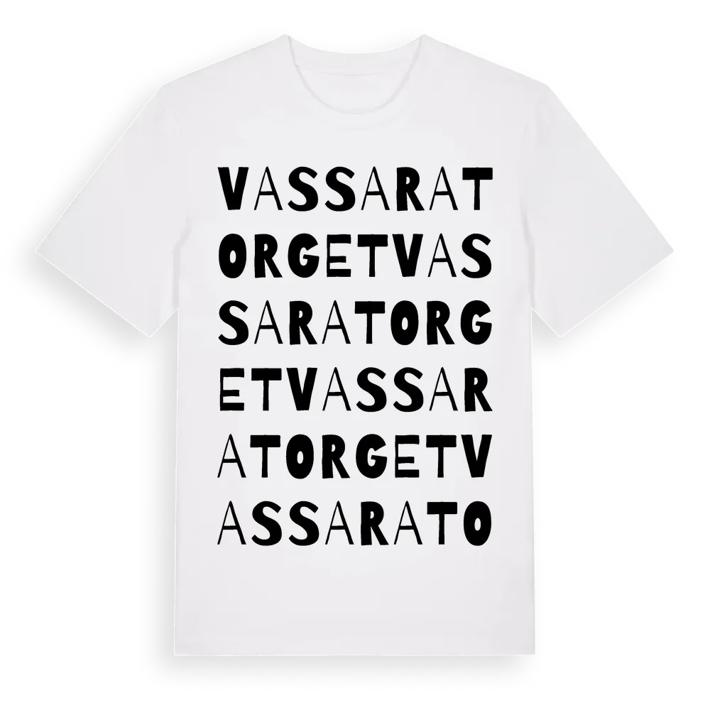 En ordlek byggd på Vassaratorgets namn. Subtilt och klurig – ett motiv som bara de som verkligen känner platsen fullt ut förstår. Premium bomull, unisex – från Vassaratorget i Norrbottens län.