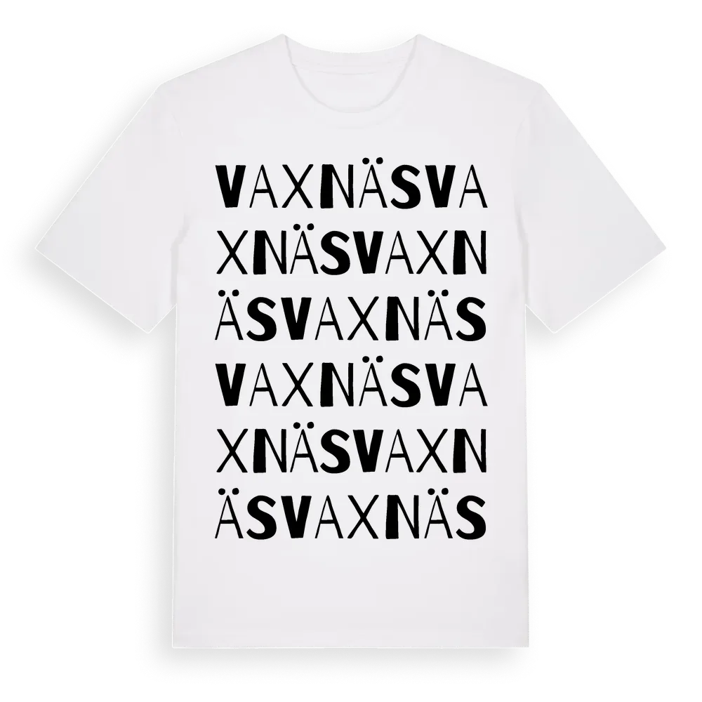 Vaxnäs ordlek t-shirt är inspirerad av Vaxnäs i Norrbottens län, Sverige. Tröjan är designad för dig som har en speciell koppling till platsen – oavsett om du bor här, har rötterna här eller bara älskar Vaxnäs.