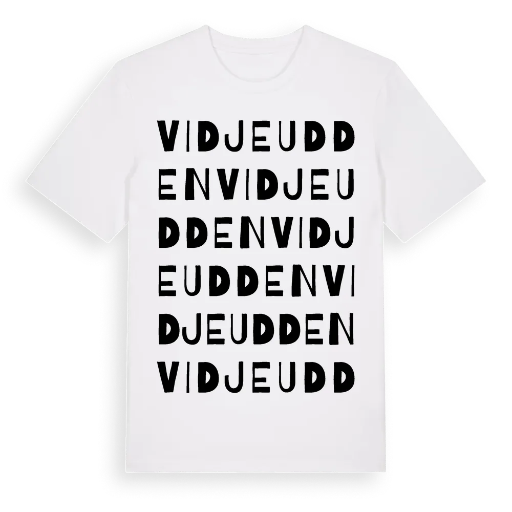 Vidjeudden ordlek t-shirt är inspirerad av Vidjeudden i Norrbottens län, Sverige. Tröjan är designad för dig som har en speciell koppling till platsen – oavsett om du bor här, har rötterna här eller bara älskar Vidjeudden.
