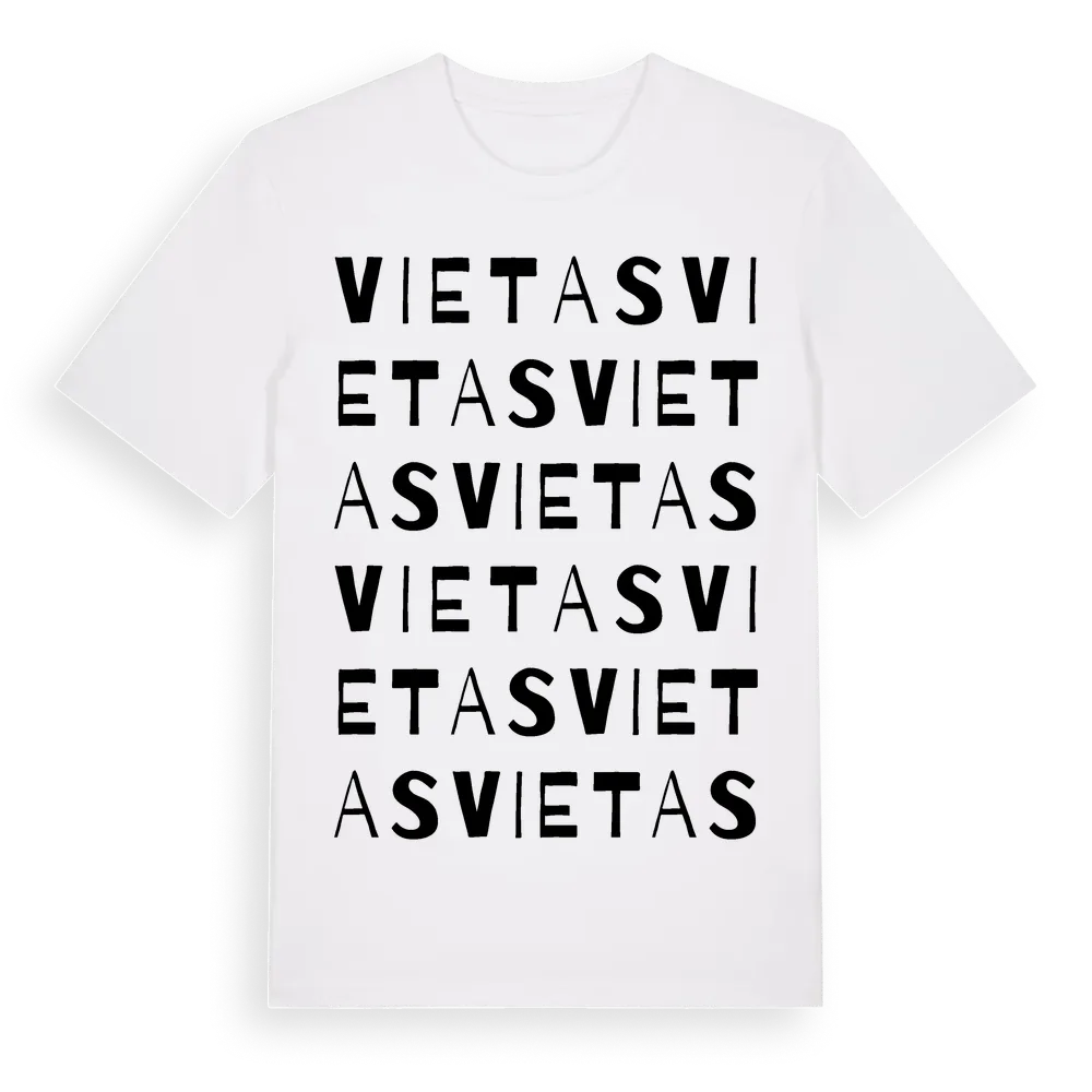 Vietas ordlek t-shirt är inspirerad av Vietas i Norrbottens län, Sverige. Tröjan är designad för dig som har en speciell koppling till platsen – oavsett om du bor här, har rötterna här eller bara älskar Vietas.