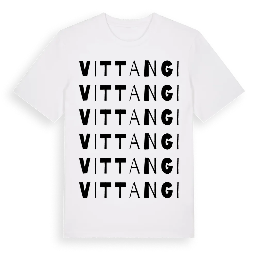 En ordlek byggd på Vittangis namn. Subtilt och klurig – ett motiv som bara de som verkligen känner platsen fullt ut förstår. Premium bomull, unisex – från byn Vittangi i Norrbottens län.