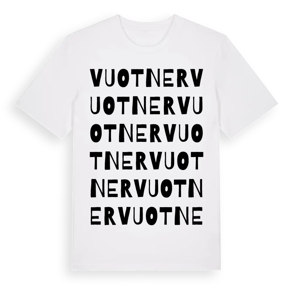 Vuotner ordlek t-shirt är inspirerad av byn Vuotner i Norrbottens län, Sverige. Tröjan är designad för dig som har en speciell koppling till platsen – oavsett om du bor här, har rötterna här eller bara älskar Vuotner.