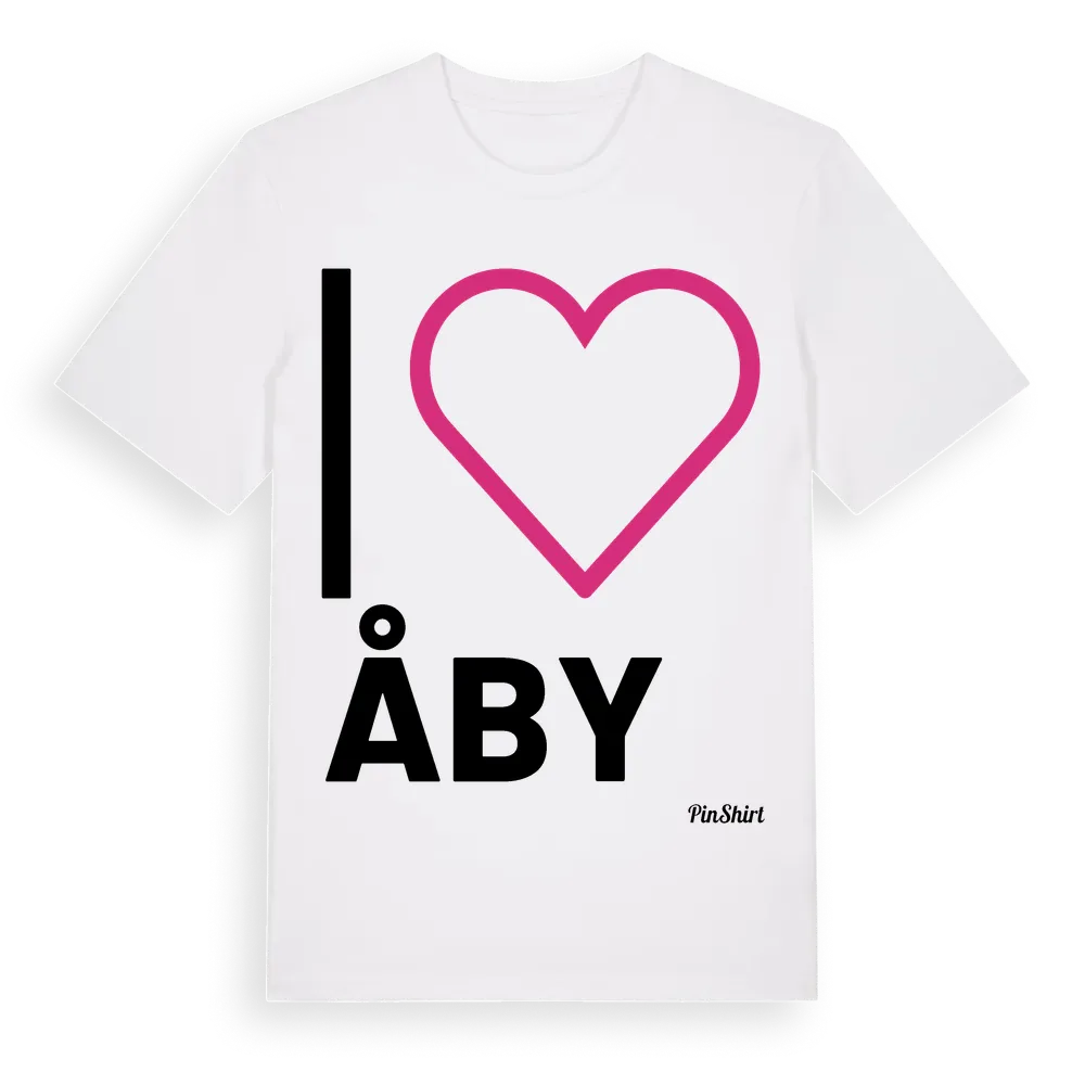 Det klassiska "I ❤ Åby"-motivet i stort format som täcker hela bröstet. För dig som vill visa kärleken till Åby på riktigt. Premium bomull, unisex – från byn Åby i Örebro län.