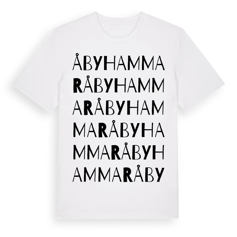 Åbyhammar ordlek t-shirt är inspirerad av byn Åbyhammar i Örebro län, Sverige. Tröjan är designad för dig som har en speciell koppling till platsen – oavsett om du bor här, har rötterna här eller bara älskar Åbyhammar.