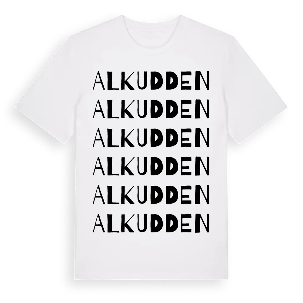 Alkudden ordlek t-shirt är inspirerad av byn Alkudden i Örebro län, Sverige. Tröjan är designad för dig som har en speciell koppling till platsen – oavsett om du bor här, har rötterna här eller bara älskar Alkudden.