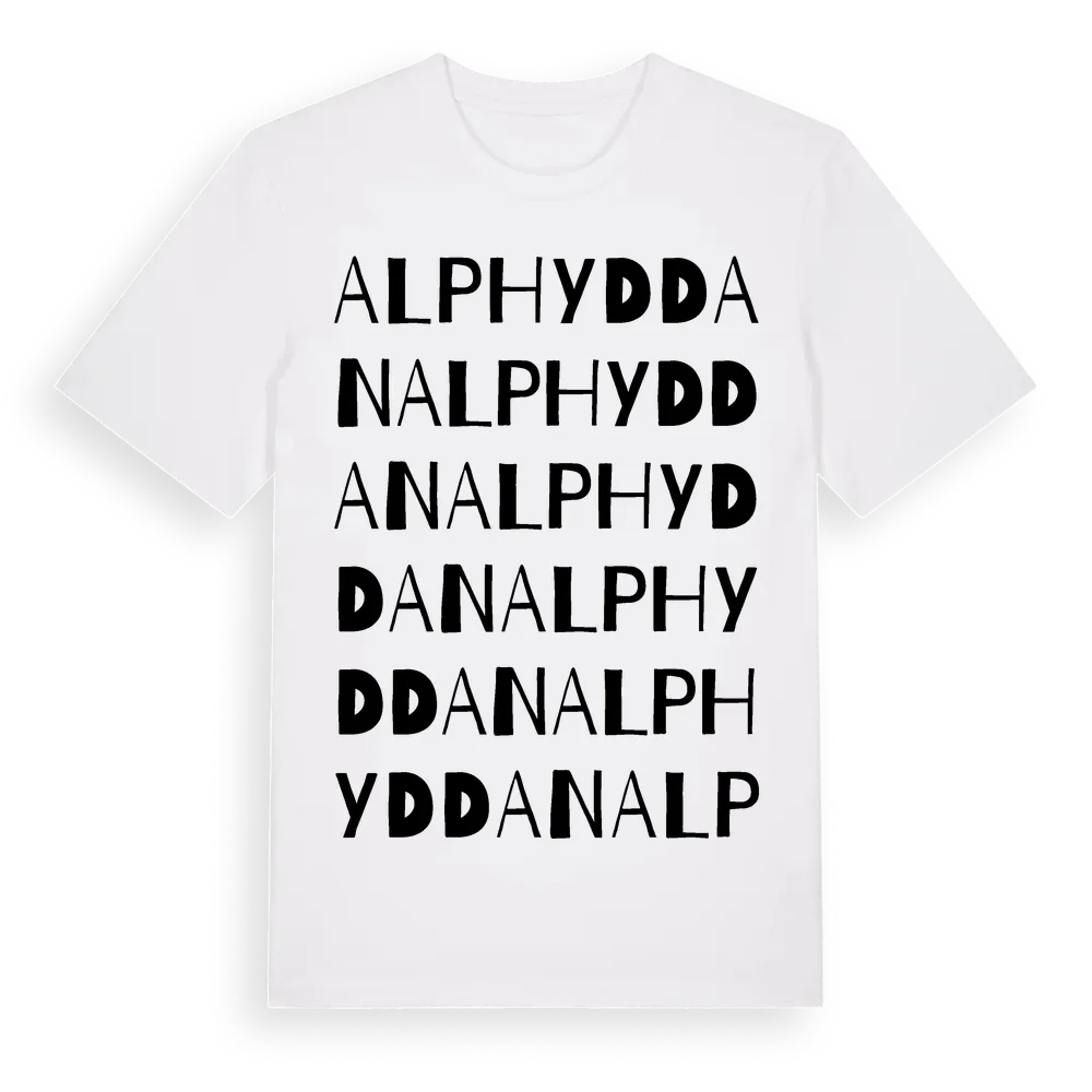 Alphyddan ordlek t-shirt är inspirerad av Alphyddan i Örebro län, Sverige. Tröjan är designad för dig som har en speciell koppling till platsen – oavsett om du bor här, har rötterna här eller bara älskar Alphyddan.