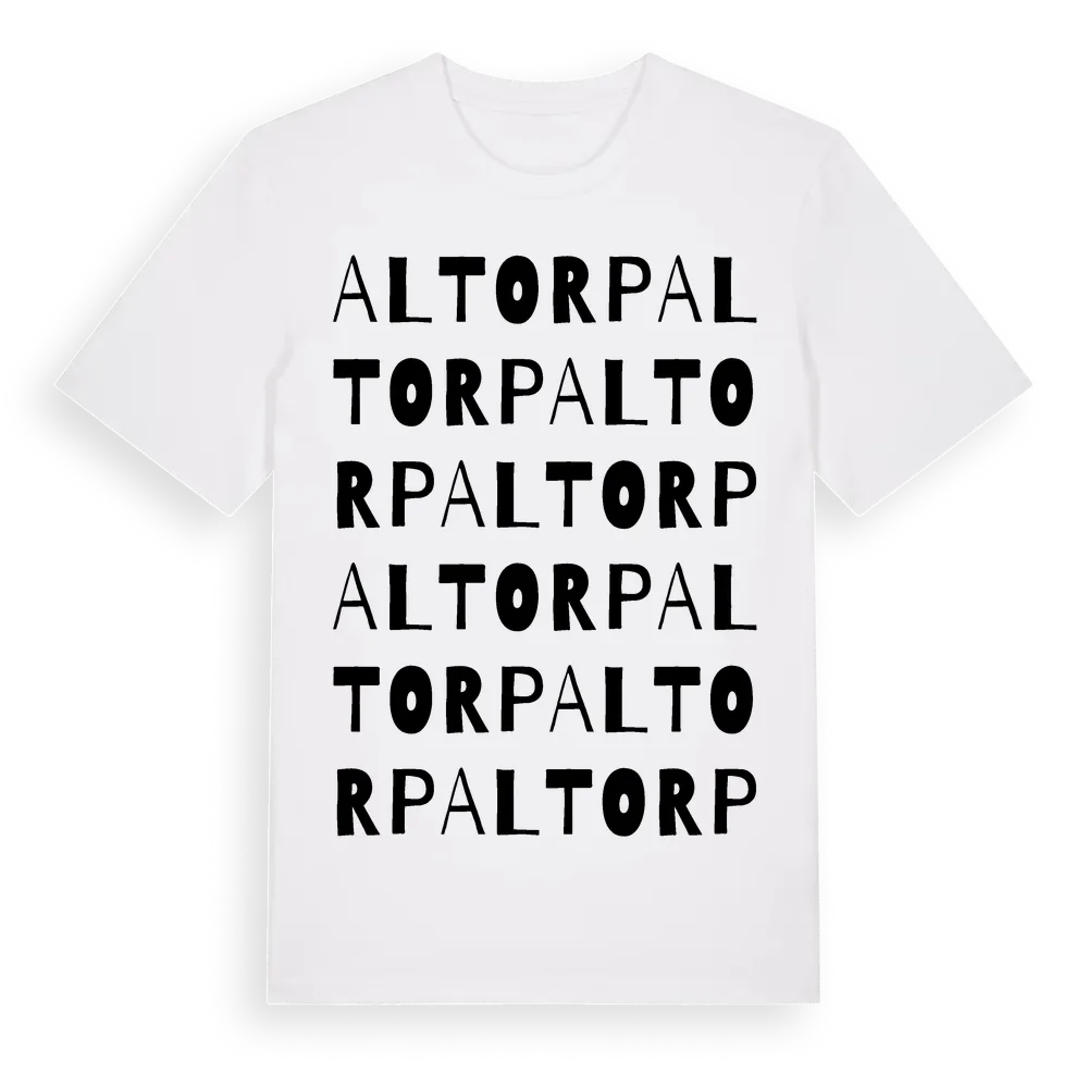 Altorp ordlek t-shirt är inspirerad av Altorp i Örebro län, Sverige. Tröjan är designad för dig som har en speciell koppling till platsen – oavsett om du bor här, har rötterna här eller bara älskar Altorp.