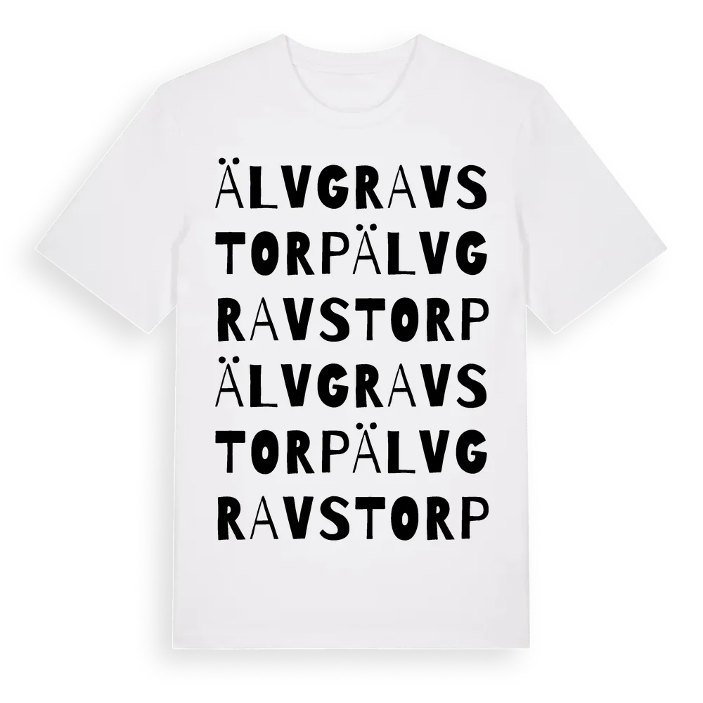 Älvgravstorp ordlek t-shirt är inspirerad av Älvgravstorp i Örebro län, Sverige. Tröjan är designad för dig som har en speciell koppling till platsen – oavsett om du bor här, har rötterna här eller bara älskar Älvgravstorp.