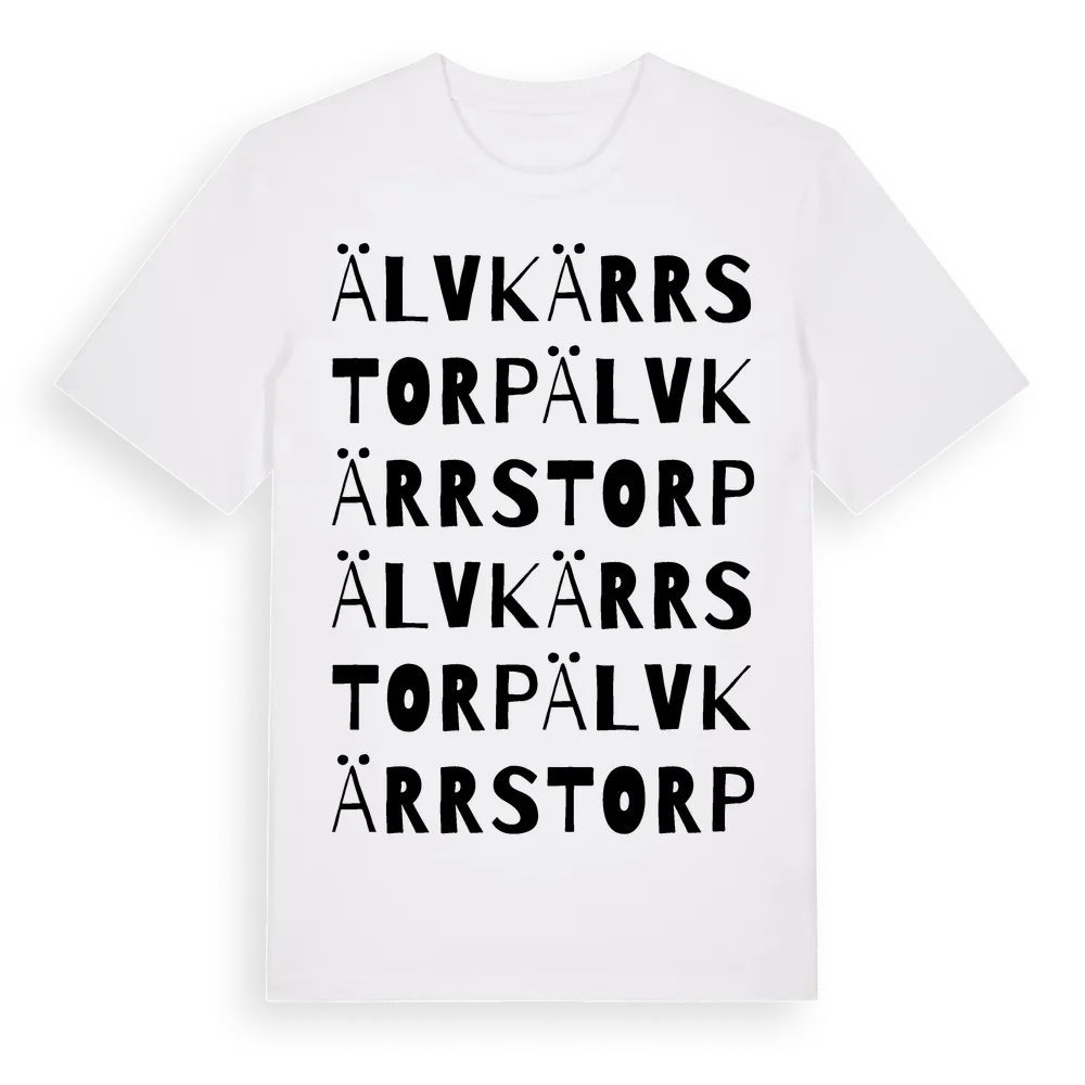 Älvkärrstorp ordlek t-shirt är inspirerad av Älvkärrstorp i Örebro län, Sverige. Tröjan är designad för dig som har en speciell koppling till platsen – oavsett om du bor här, har rötterna här eller bara älskar Älvkärrstorp.