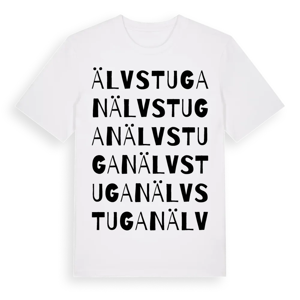 Älvstugan ordlek t-shirt är inspirerad av Älvstugan i Örebro län, Sverige. Tröjan är designad för dig som har en speciell koppling till platsen – oavsett om du bor här, har rötterna här eller bara älskar Älvstugan.