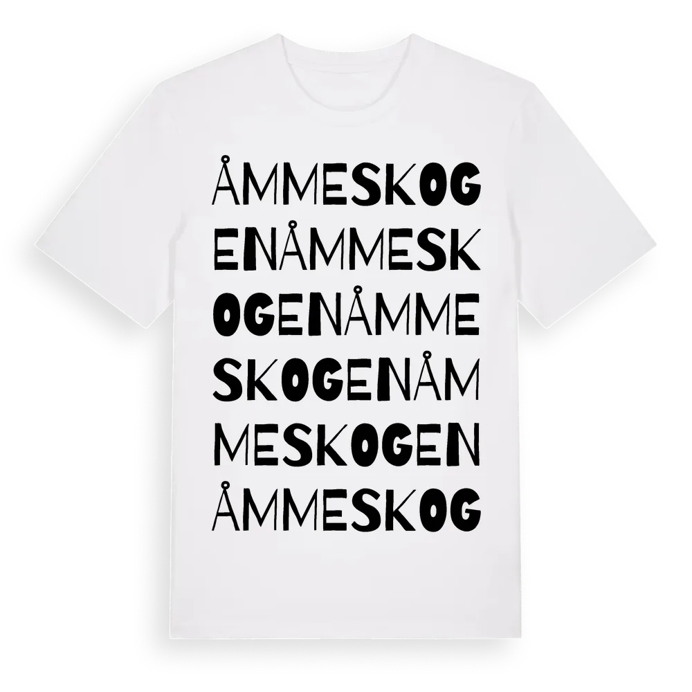 Åmmeskogen ordlek t-shirt är inspirerad av Åmmeskogen i Örebro län, Sverige. Tröjan är designad för dig som har en speciell koppling till platsen – oavsett om du bor här, har rötterna här eller bara älskar Åmmeskogen.