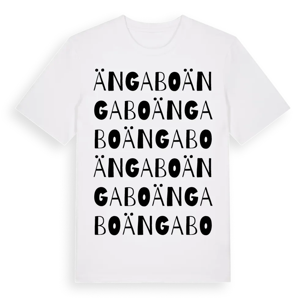 Ängabo ordlek t-shirt är inspirerad av Ängabo i Örebro län, Sverige. Tröjan är designad för dig som har en speciell koppling till platsen – oavsett om du bor här, har rötterna här eller bara älskar Ängabo.